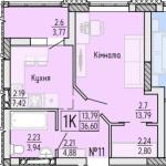 Площадь - 36,2 кв.м.