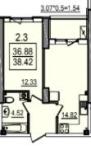 Площадь - 38.6 м2.
