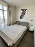 Спальня має комфорне велике ліжко, столик для макіяжу, гардеробну із сушильною машиною Siemens, вихід на балкон із панорамним видом на море.