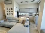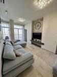 Двокімнатна квартира із кухнею-студією , із загальною площею 75 кв.м, із дизайнерським сучасним ремонтом та душею, що створює відчуття затишку та комфту. Площа квартири використана максимально ергономічно та функціонально. При вході: невеликий тамбур із великою шафою-купе для верхнього одягу та взуття. Далі ви потрапляєте в світлу і простору вітальню із великим комфортним диваном і телевізором, а також панорамними вікнами і вихідом на балкон із видом на море та Французький бульвар.