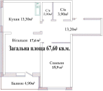 Общая площадь: 68 м2