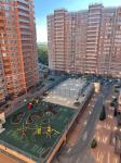 Просторная кухня, вид из окон на игровую площадку, остекленный балконы.