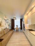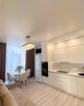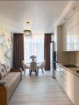 Ремонт в светлых тонах. Квартира укомплектована мебелью и бытовой техникой.