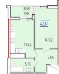 Общая площадь: 42,5 м2
