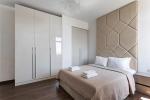 В квартире 2 отдельные спальные зоны и большая кухня гостиная ,гардеробная комната.