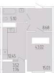Общая площадь: 43,02 м2