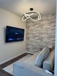 Распланирована в кухню гостиную и отдельную спальню. Есть гардеробная комната.