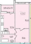 Общая площадь: 44 м2