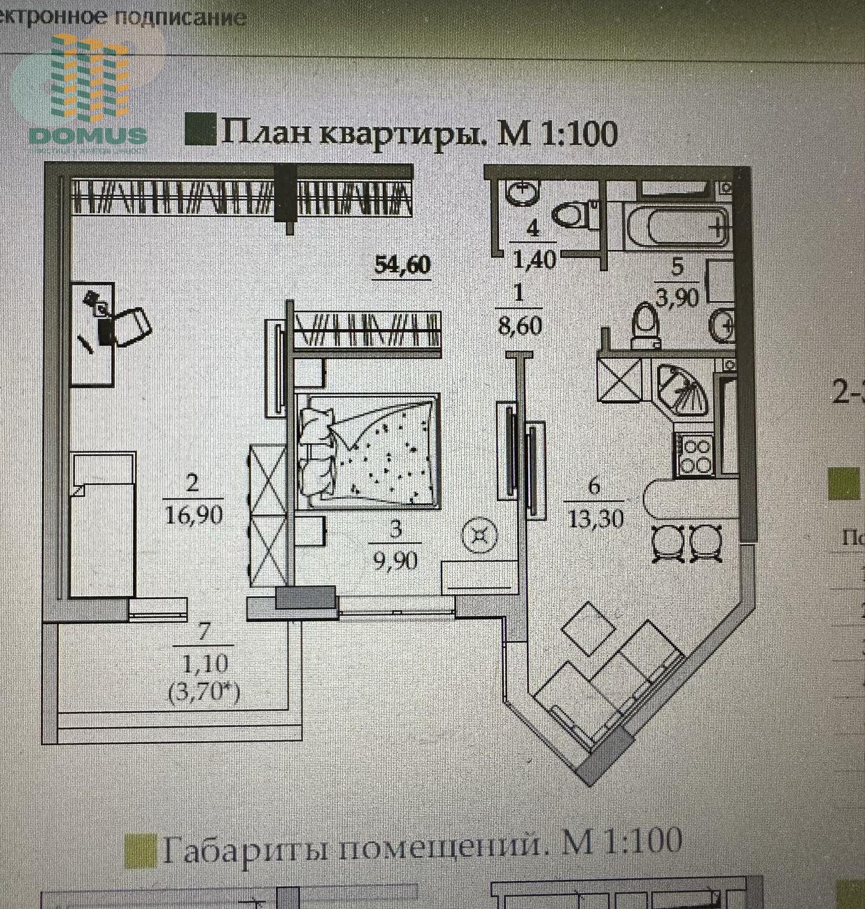 Общая площадь : 54,6 м2