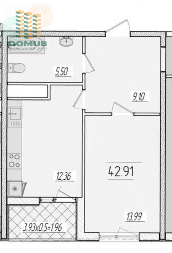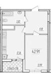 Общая площадь: 42,91 м2