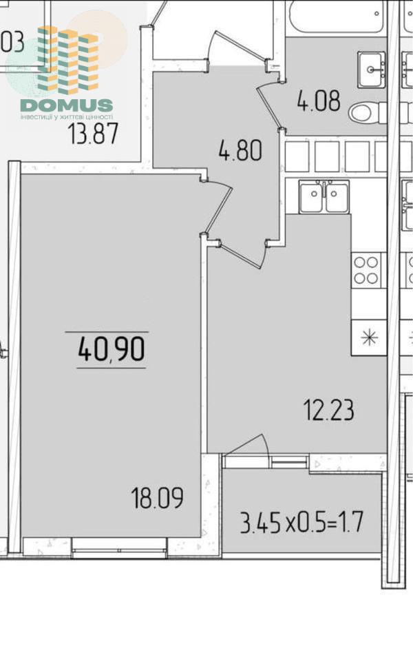 Общая площадь: 41 м2