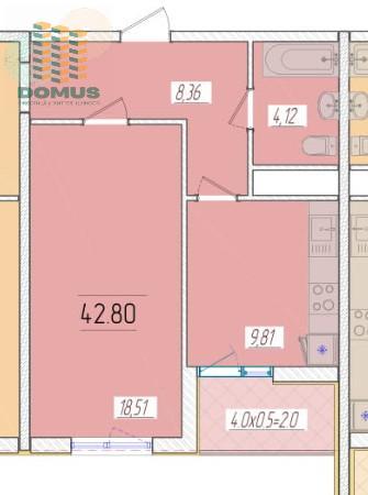 Общая площадь: 42,6 м2