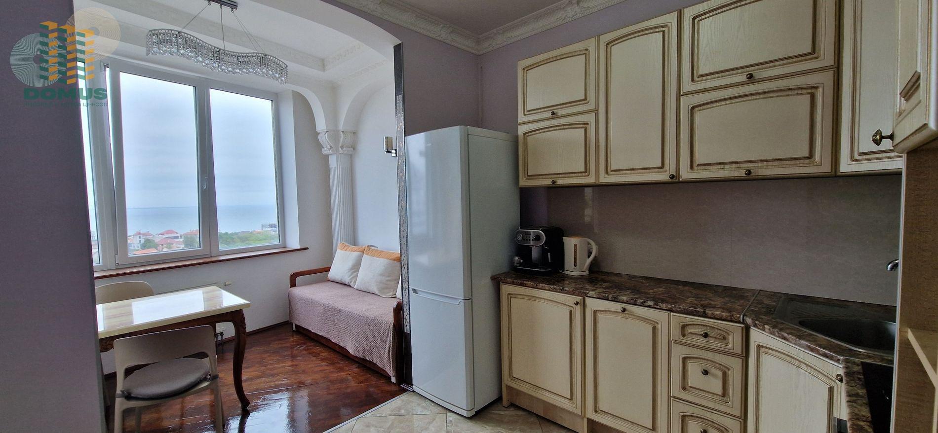 В квартире выполнено зонирование на гостиную и спальню, на кухню и столовую, выполнен дорогой ремонт и установлена вся необходимая техника. Есть гардеробная и совмещённый санузел. Напротив квартиры общий балкон. Во дворе парковка и облагорожена придомовая территория. Море в шаговой доступности. Парк сразу за территорией дома. Рядом магазины, Аптека, мойка и тд.