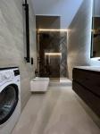 Современный минимализм, мебель и техника премиум-класса. Использован итальянский керамогранит в стиле травертин — тёплая фактура, премиальное ощущение. Сантехника премиум-класса с современным дизайном. Авторское освещение, разработанное специально под концепцию интерьера. Стены окрашены топовой краской Sadolin. Эргономичная планировка с продуманной системой хранения. LED-подсветка шкафов и гардеробных. Система обратного осмоса с фильтрацией питьевой воды. Кофемашина delonghi (в подарок) Квартира выполнена под полным дизайнерским контролем, каждая деталь тщательно продумана. Каждая зона квартиры — функциональна и визуально эффектна.