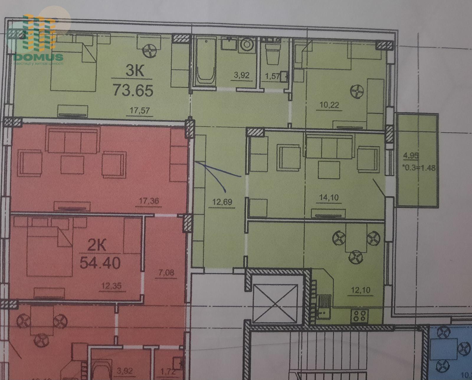 Общая площадь: 73,65 м2