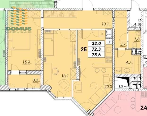 Общая площадь: 75,6 м2
