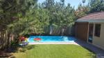На заднем дворе бассейн с подсветкой с шикарными крымскими соснами по периметру.