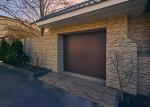 Просторий гараж для мікроавтобуса з плиткою на підлозі і поличками на стінах. Секційні автоматичні ворота.