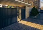 Ковані металеві вхідні ворота та просторий паркінг на три автомобілі.