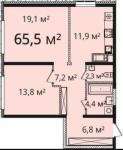 Общая площадь: 65.5 м2.