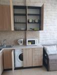 Особенности и преимущества квартиры: Ремонт и комплектация: Выполнен качественный современный ремонт. Квартира полностью укомплектована новой мебелью и всей необходимой бытовой техникой (стиральная машина, сушильная машина (видна на фото!), варочная поверхность, духовой шкаф, микроволновая печь, холодильник, бойлер). Кухня: Функциональный угловой кухонный гарнитур в светлых тонах, встроенная техника. Есть зона отдыха (диван). Спальня/Комната: Просторная комната, оборудованная большим зеркальным шкафом-купе с полками для хранения. Двуспальная кровать, прикроватные тумбы, телевизор. Санвузол: Современная душевая кабина, стильный кафель с тематическим декором (виды Италии). Установлена вся сантехника. Преимущества ЖК «Тридцать первая Жемчужина»: Безопасность и комфорт: Закрытая охраняемая территория, видеонаблюдение, консьерж-сервис 24/7. Инфраструктура: Развитая внутренняя инфраструктура, близость к магазинам, кафе, остановкам транспорта. Элитный уровень: Шикарный, впечатляющий холл с мраморной отделкой и золотыми лифтами (видно на фото), что подчеркивает статус и престиж жилья. Есть генератор и свет. Управляющая компания: Качественное обслуживание от KADORR Group, обеспечивающее чистоту и порядок.