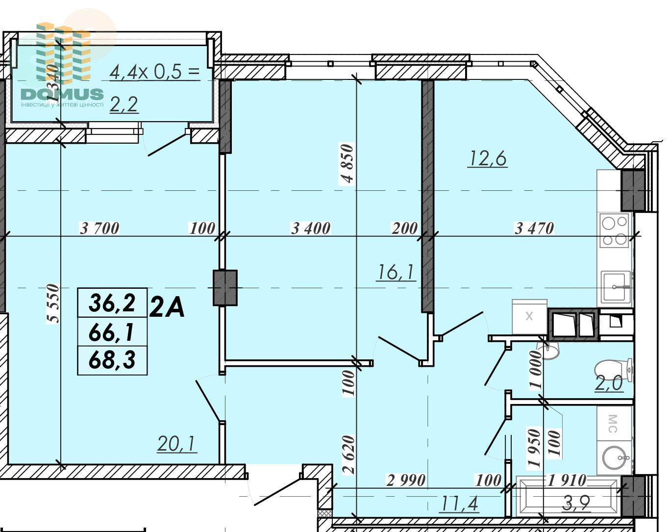 Общая площадь: 68 м2