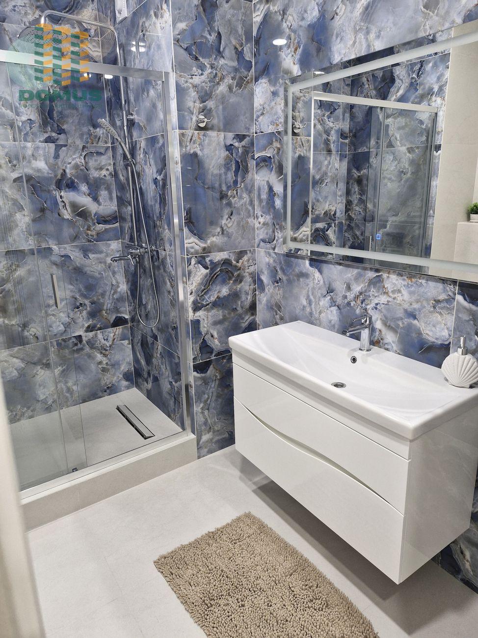 Квартира в центре дома. Только сделан качественный ремонт. По всей квартире декоративная штукатурка. Мебель и техника встроенные, квартира современная и светлая. В коридоре и спальне есть огромные шкафы. В санузле теплый пол, большая душевая кабина. Установлены кондиционеры 2шт, посудомоечная машина, холодильник, духовой шкаф, микроволновка, вытяжка, варочная поверхность, стиральная машинка. Двуспальная кровать с подъемным механизмом. Большой обеденный стол.