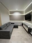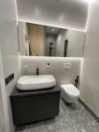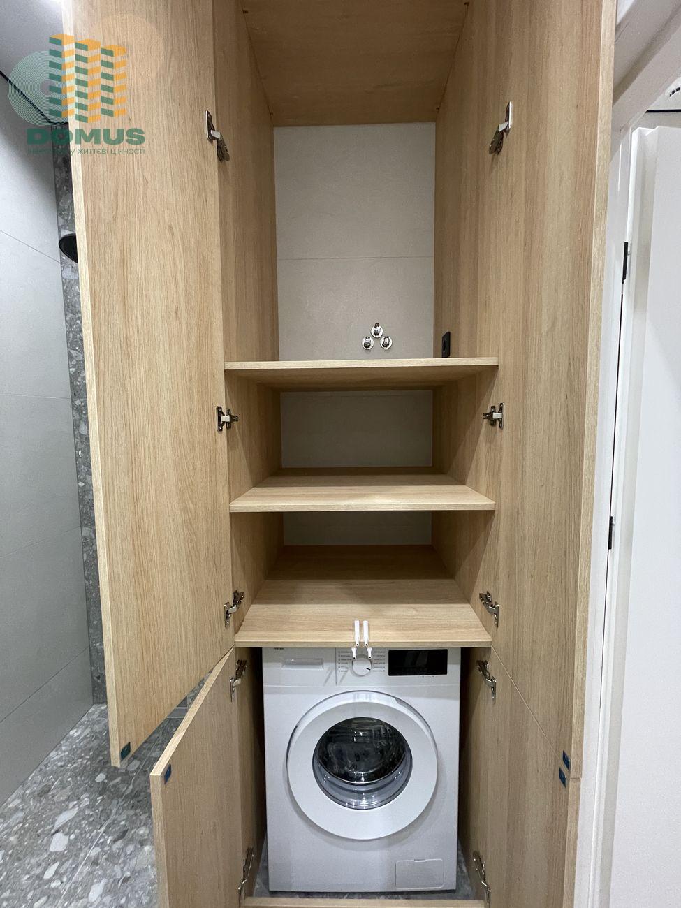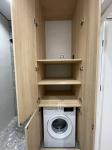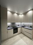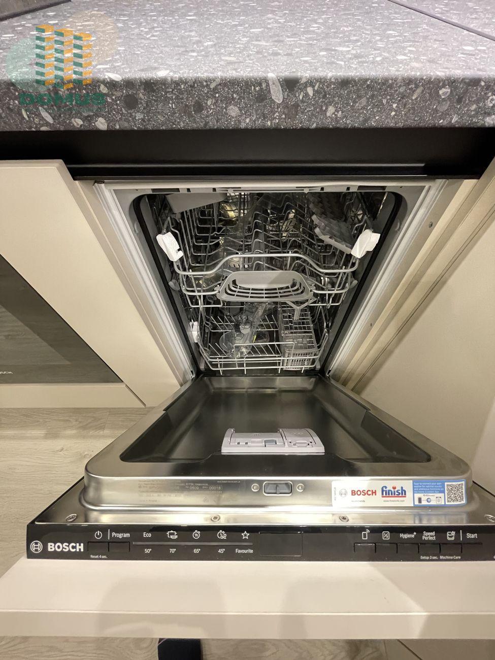 В квартире вся мебель была изготовлена под заказ (с фасадами немецкого бренда и доводчиками), установленная сантехника - европейского качества, а встроенная техника - премиальных брендов Bosh и Samsung.
