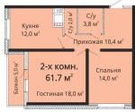 Общая площадь: 61,7 м2