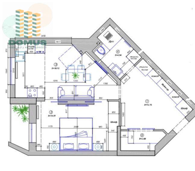 Площадь - 55.3 м2