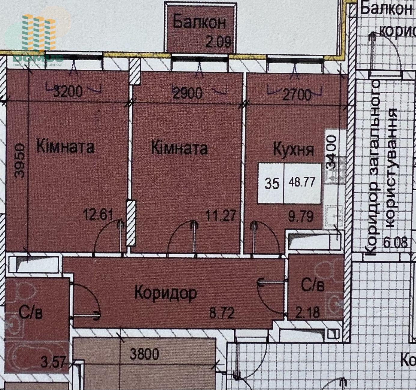 Общая площадь: 48,77 м2