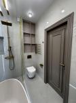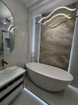 Интерьер дополняет отдельно стоящая ванна из искусственного камня — выразительный акцент, подчёркивающий эстетику и уровень комфорта. Квартира полностью укомплектована мебелью и техникой Whirlpool и Gorenje. Фасады на встроенной мебели находятся на финальной стадии установки и будут завершены в ближайшее время, что позволит новому владельцу получить полностью готовое, завершённое пространство без ожиданий и хлопот.