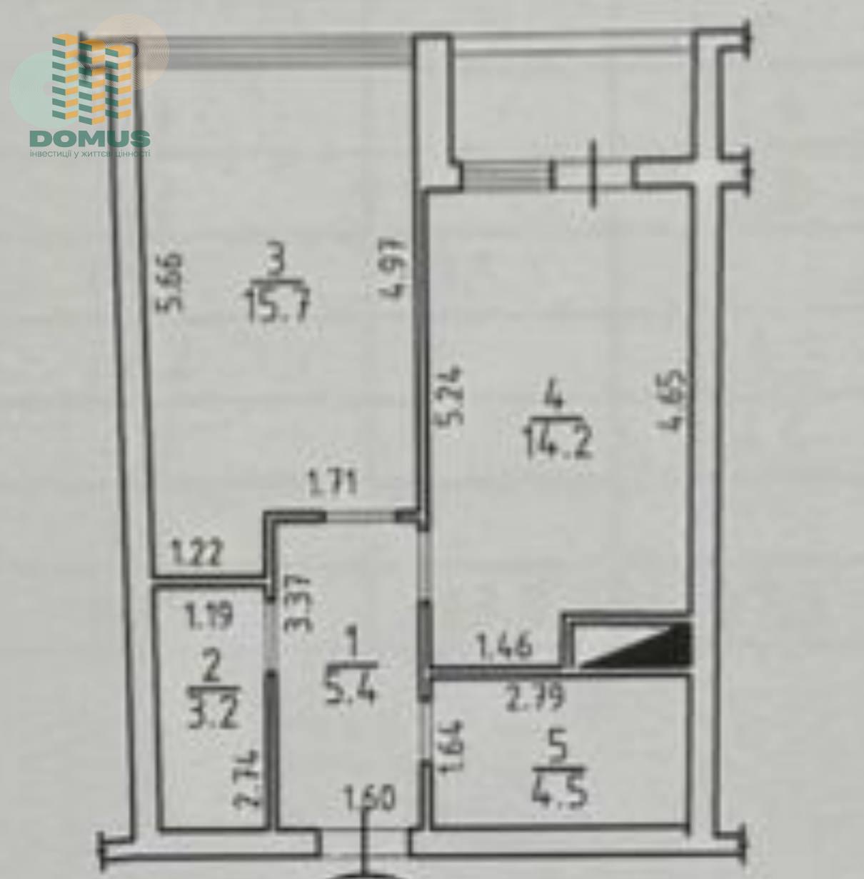 Общая площадь: 44,5 м2