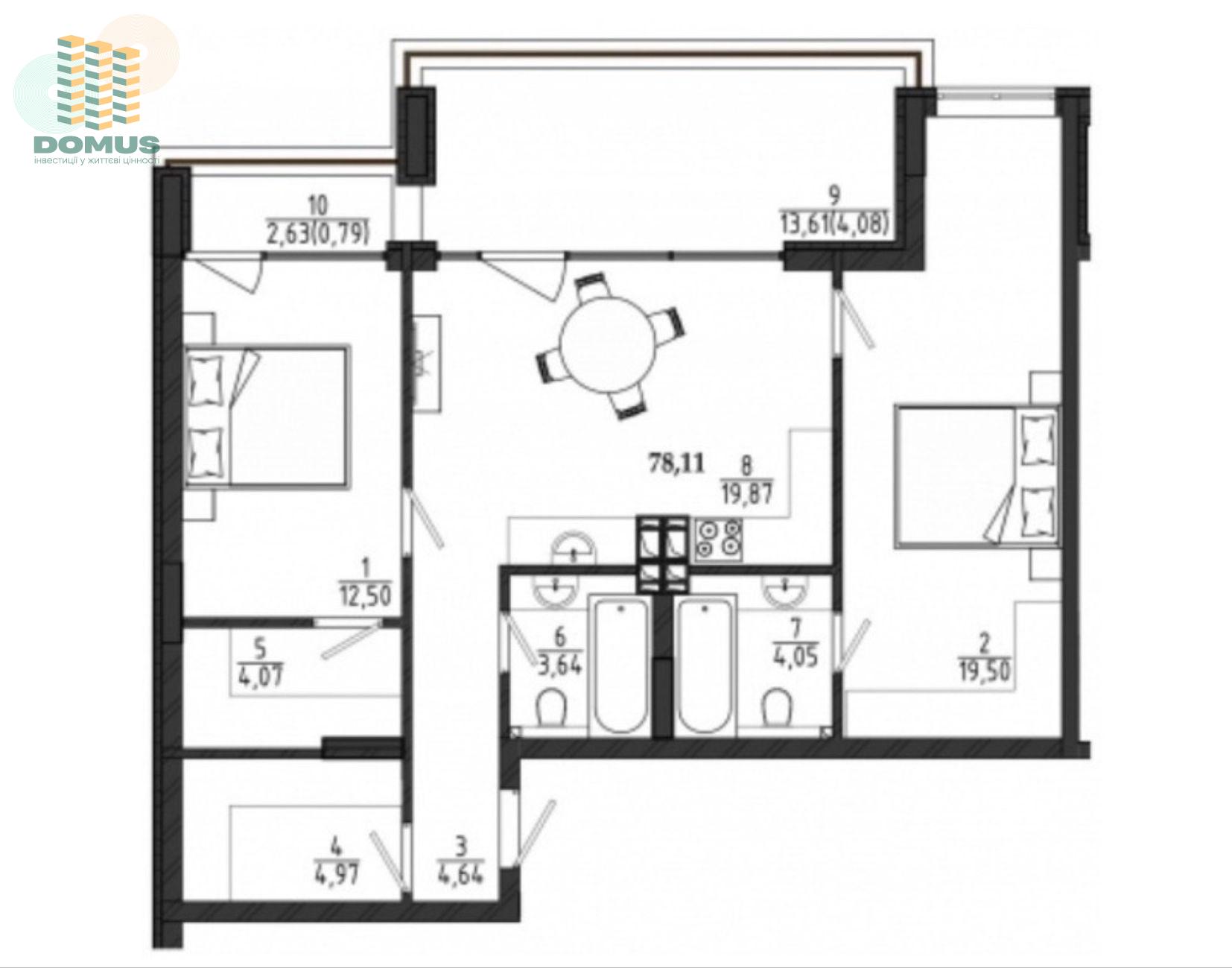 Общая площадь: 78,11 м2