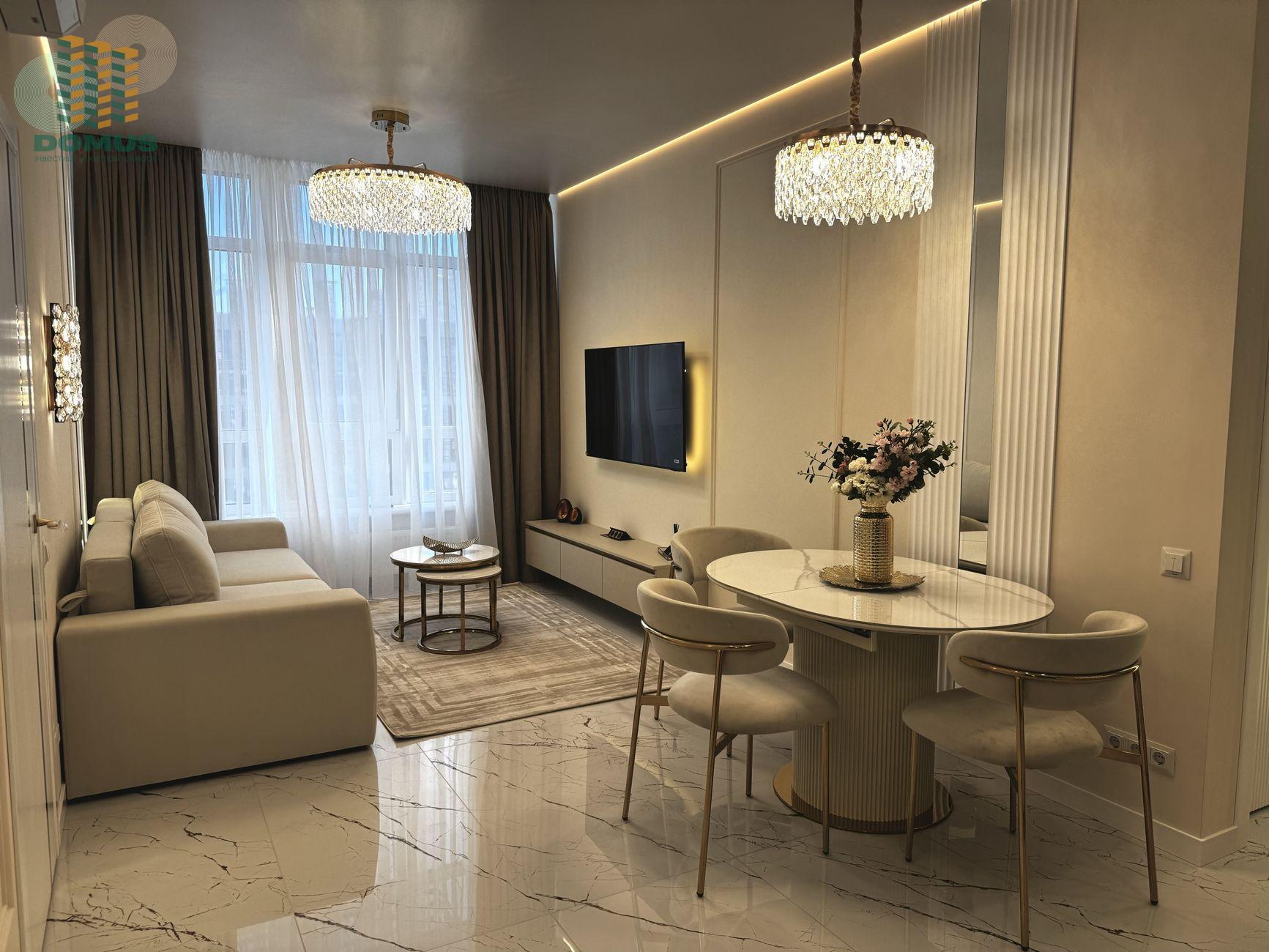 Зручне планування: дві окремі спальні, простора кухня-вітальня, санвузол та балкон. Виконано сучасний дизайнерський ремонт у світлих тонах. Квартира повністю готова до заселення та оснащена всією необхідною технікою: варильна поверхня, духова шафа та мікрохвильова піч Bosch, посудомийна машина, пральна машина з функцією сушіння, бойлер, три кондиціонери. Комфортний варіант для життя біля моря або як інвестиція в оренду з гарною прибутковістю
