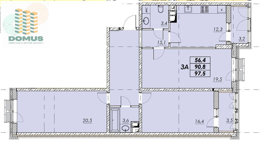 Общая площадь: 99,3 м2