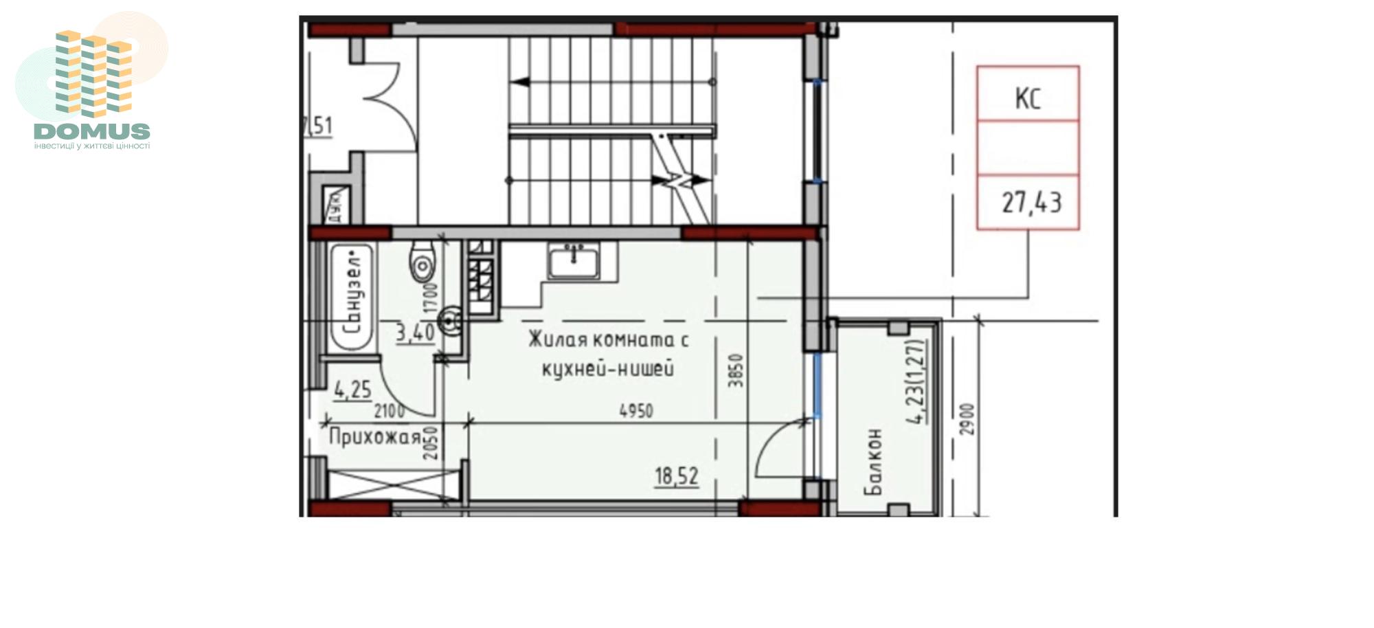 Загальна площа: 27,43 м2