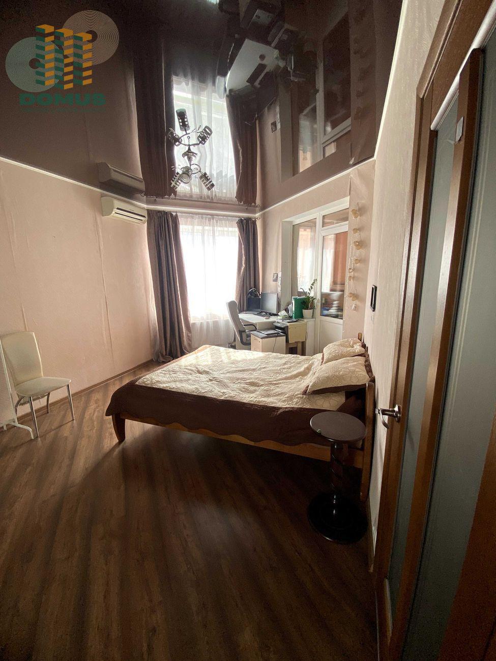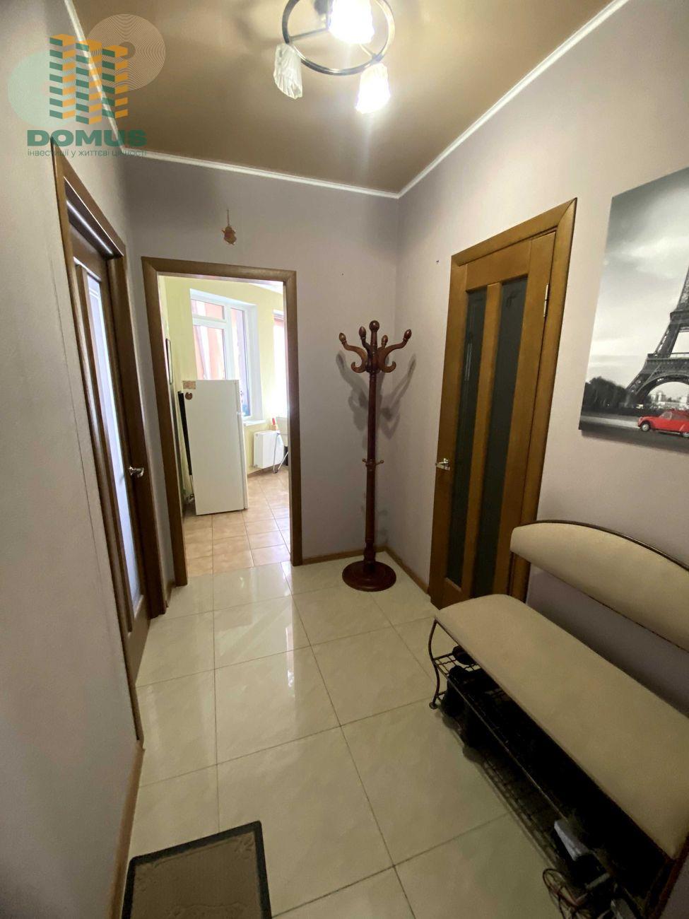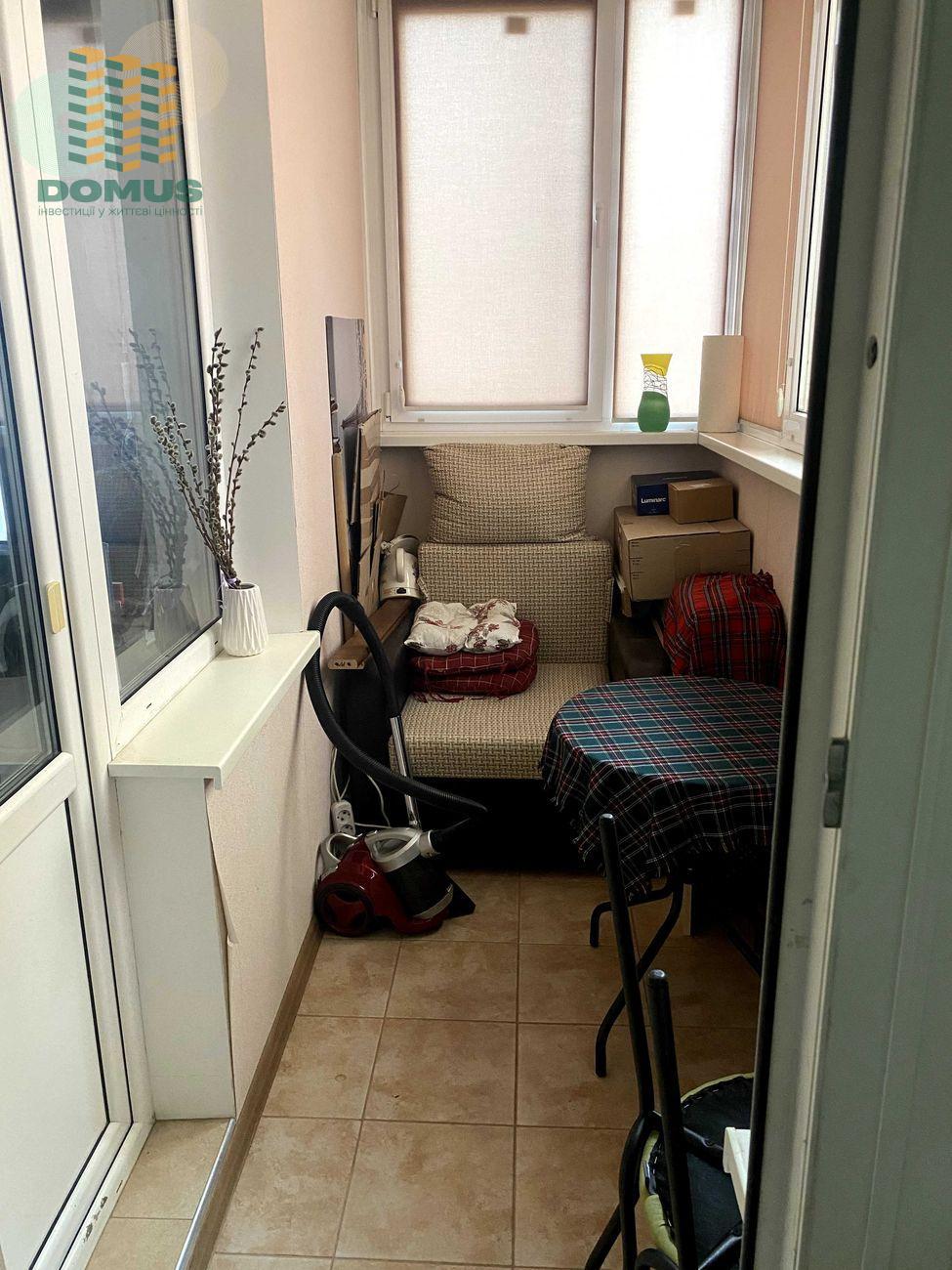 Оснащена всіма необхідними меблями та технікою. Можна одразу заселятися. Має вбудовану кухню з технікою, шафа-купе на всю стіну, кондиціонер, стильна коричнева підвісна стеля. Також є балкон, який за бажання можна переобладнати в кімнату або кабінет.