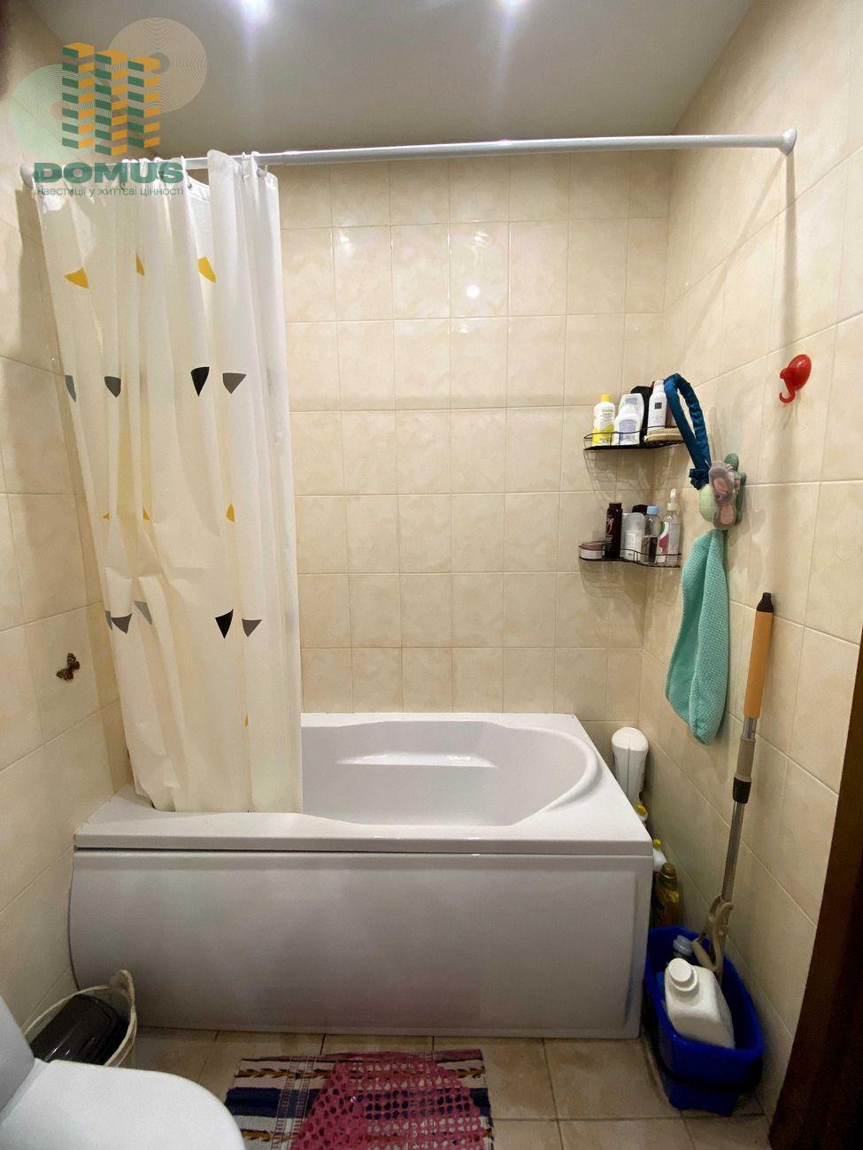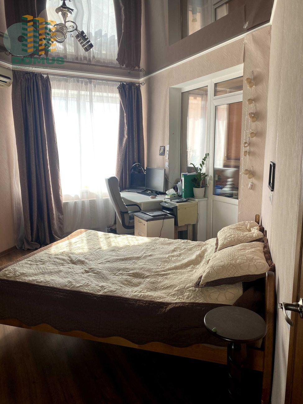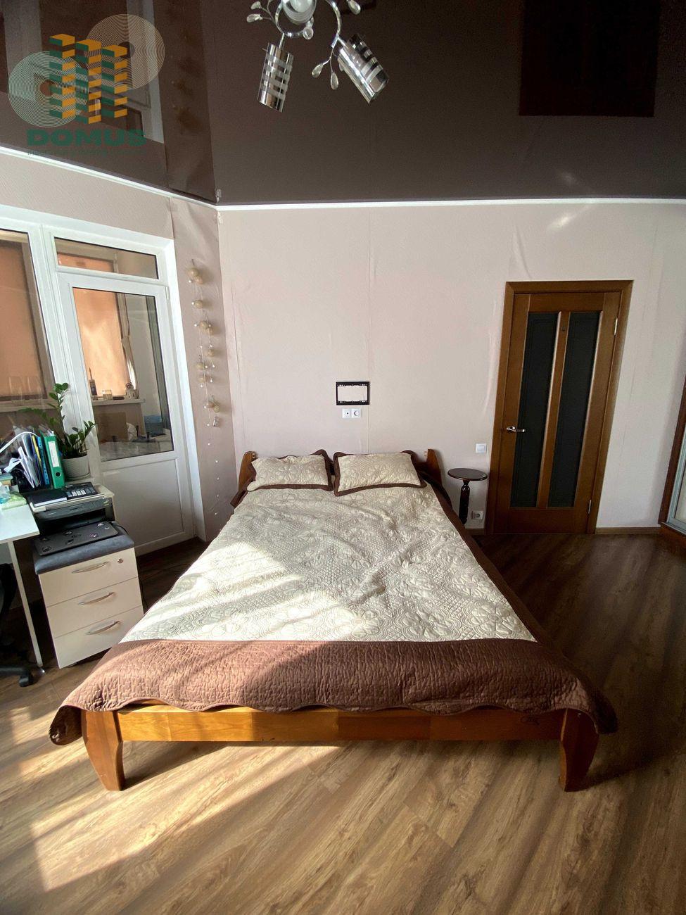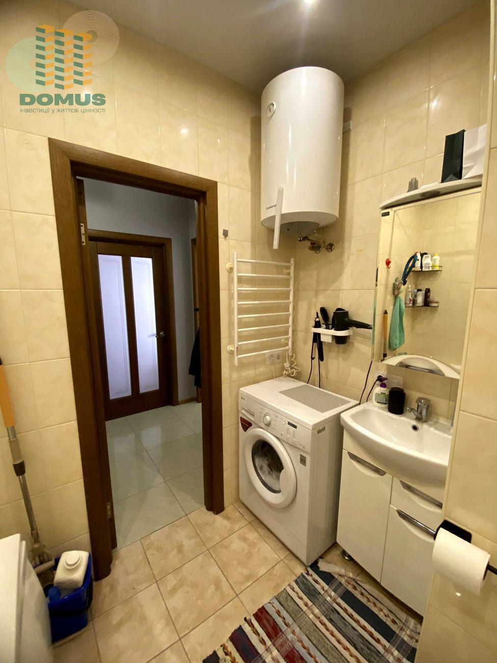Оснащена всіма необхідними меблями та технікою. Можна одразу заселятися. Має вбудовану кухню з технікою, шафа-купе на всю стіну, кондиціонер, стильна коричнева підвісна стеля. Також є балкон, який за бажання можна переобладнати в кімнату або кабінет.